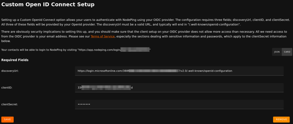 NodePing Custom OIDC Configuration